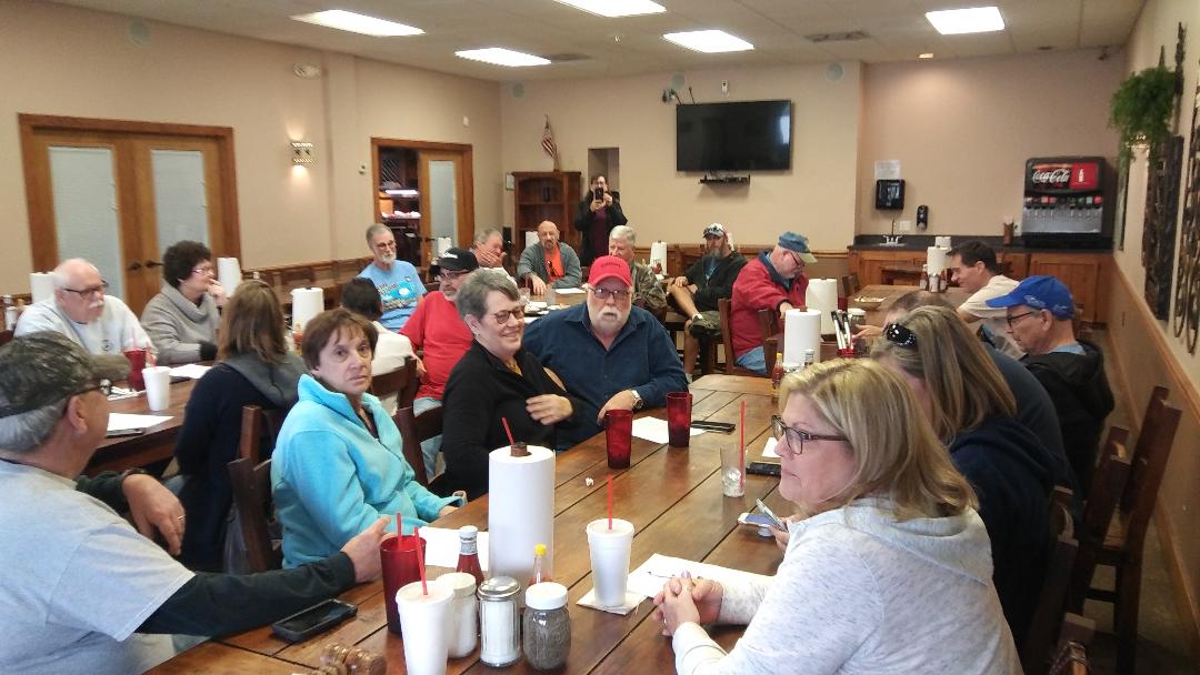 President's Message: We had a great turnout for our meeting last Saturday! If my math is correct we had a total of 25 members and wives! There were 8 Falcons and 1 Comet that made the trip out on a good weather day! We enjoyed a good lunch and fellowship with our fellow car buddies. I understand some parts will even be changing hands too! I have attached a few photos from our meeting.